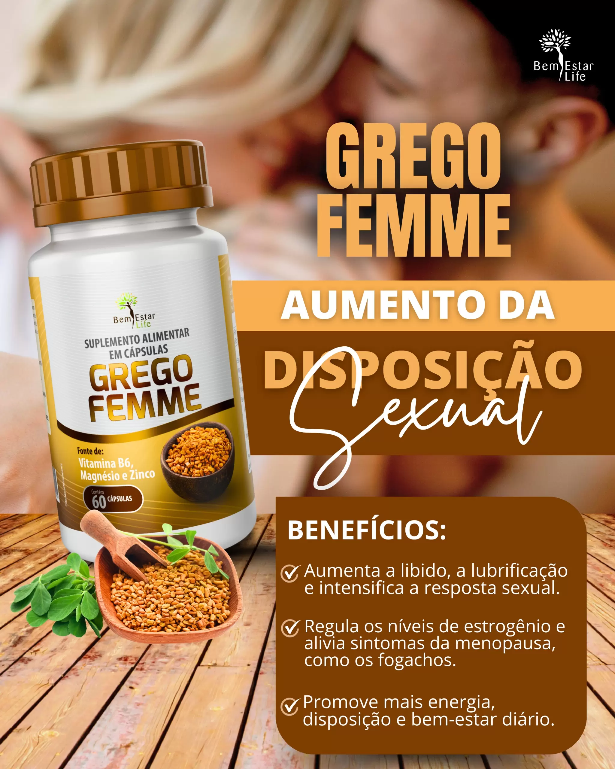 O Grego Femme é uma fórmula avançada da Bem Estar Life, desenvolvida especialmente para revitalizar a saúde da mulher e resgatar o desejo.