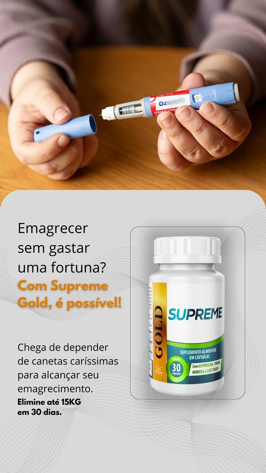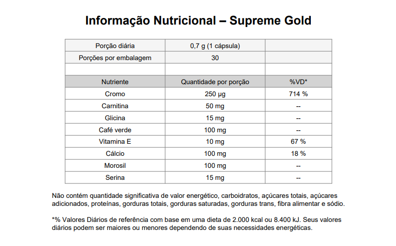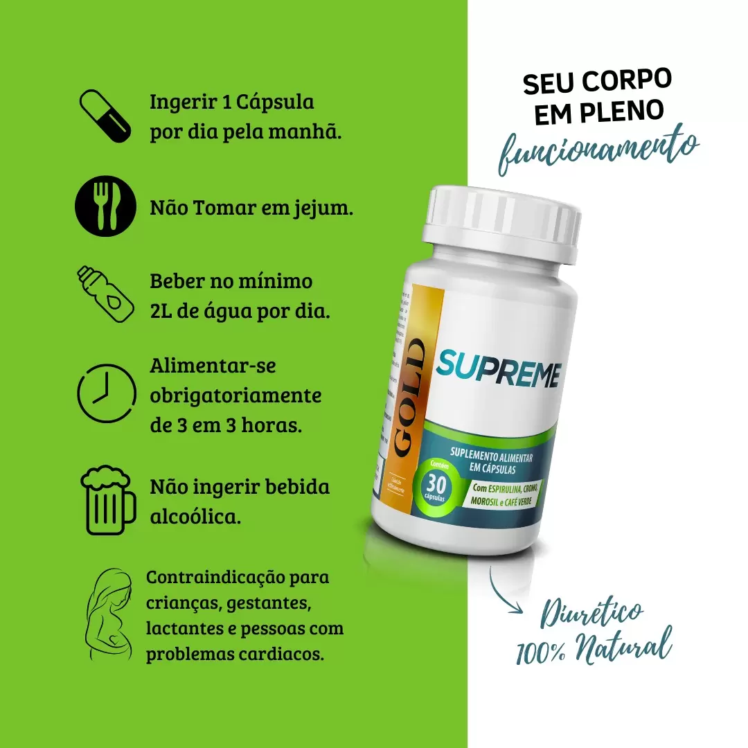 O Supreme Gold é um suplemento alimentar desenvolvido especialmente para promover o emagrecimento saudável. Com sua fórmula, estamos comprometidos em fornecer aos nossos clientes uma solução ainda mais eficaz e segura para alcançar seus objetivos de perda de peso.